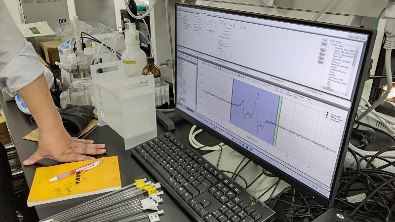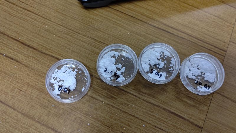 講演後の演習では、ESRによる測定を行うために、生体試料の作成、X線照射等を実施しました。実際のESR測定では、0 Gy、2.5 Gy、5 Gy、20Gyに分けて照射した生体試料をそれぞれスペクトル測定し、試料中の全スピン数を計測しました。今回のセミナーでは試料とした爪の採取法や個体差に起因する差が大きく、トリアージでの活用に向けた課題が明確となりました。