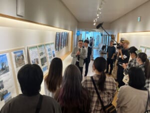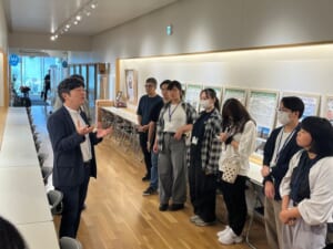 令和7年9月20日、福島県浪江町の道の駅なみえにおいて、放射化学・生態影響評価部門の赤田尚史教授とリスク解析・生物線量評価部門の三浦富智教授が、環境省が令和6年度に発足させた「ぐぐるプロジェクト ふくしまメッセンジャーズ」のメンバーに対し、2011年3月の東日本大震災以降、弘前大学が同町で展開してきた復興支援活動について説明を行いました。あわせて保健学研究科博士前期課程2年の北山結彩さん(指導教員:赤田教授)と同1年の沖本彩華さん(指導教員:三浦教授)も、自身の体験を交えながら活動を振り返りました。