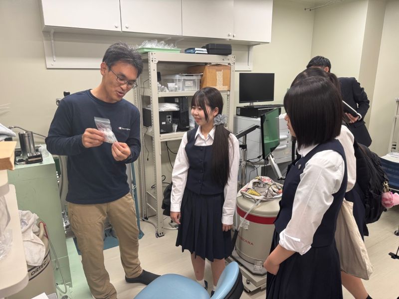 10月7日、弘前高等学校の「総合的な探究の時間」において放射線を研究課題に選んだ2年生4名が被ばく医療総合研究所の施設を見学しました。はじめに床次所長より研究所の概要説明が行われ、その後、各部門の教員や大学院生から装置や研究テーマについて紹介がありました。